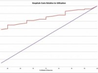 Thus, Medicare’s < 30 day readmission policy doesn't really address the fundamental cost problem in healthcare. If costs were linearly bound by resource utilization, than reducing readmissions (and thus utilization) should lead to meaningful cost reduction. But given the reality of enormous fixed costs, it's extremely difficult to move down the cost curve. To visualize: